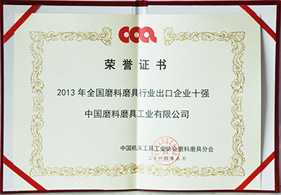 • 2013年に全國(guó)磨料磨具業(yè)界年度輸出ベストテン會(huì)社中國(guó)磨料磨具工業(yè)有限會(huì)社