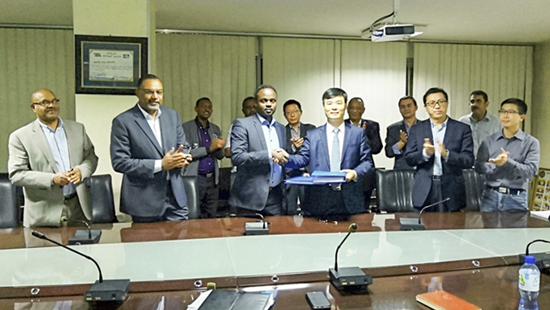Representatives of China CAMC Engineering Co and the Ethiopian Sugar Corporation sign a contract to continue constructi
