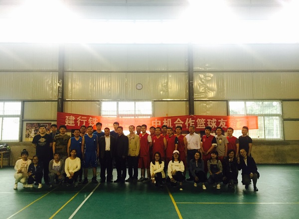 2017年4月26日,中國(guó)機(jī)械工業(yè)國(guó)際合作有限公司與業(yè)務(wù)單位中國(guó)建設(shè)銀行鄭州鐵路支行在鄭州西南球館舉行籃球友誼賽。中機(jī)合作副總經(jīng)理、黨委副書記、紀(jì)委書記王偉濤,建行鐵路支行營(yíng)業(yè)部主任郎雙振等,到場(chǎng)觀賽并為雙方球員鼓氣助威。