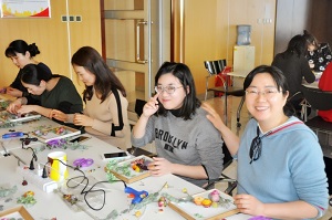 大家仔細聆聽花藝老師的指導,把自己的妙思,通過靈巧的雙手,變成了一幅幅美麗的作品。最后組織方還為每組的最佳作品準備了驚喜禮物。