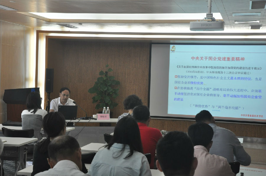 授課首先從中央關(guān)于國企黨建精神講起,強調(diào)堅持黨的領(lǐng)導(dǎo)是中國特色社會主義最本質(zhì)的特征,也是國有企業(yè)的獨特優(yōu)勢;堅持黨的領(lǐng)導(dǎo)、加強黨的建設(shè),是國有企業(yè)的“根”和“魂”。列舉了省內(nèi)外通過加強黨的建設(shè)促進企業(yè)發(fā)展的一些實例。然后從明責任、明規(guī)范、明要領(lǐng)三個方面詳細介紹了如何把黨建工作做實、做準、做優(yōu),介紹了部分單位創(chuàng)新開展黨建的做法。