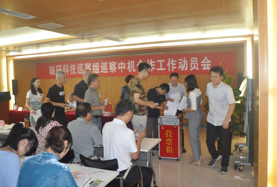 2019年8月13日下午,軸研科技巡察組巡察中機合作工作動員會在中機合作九樓多功能廳舉行,標(biāo)志著軸研科技黨委巡察組對中機合作正式開展巡察。軸研科技巡察組組長賈春梅做動員講話,中機合作黨委書記做表態(tài)發(fā)言。軸研科技黨委書記羅勇到會并講話。巡察組現(xiàn)場進行了問卷調(diào)查和民主測評。會議由中機合作黨委副書記馮麗暉主持。