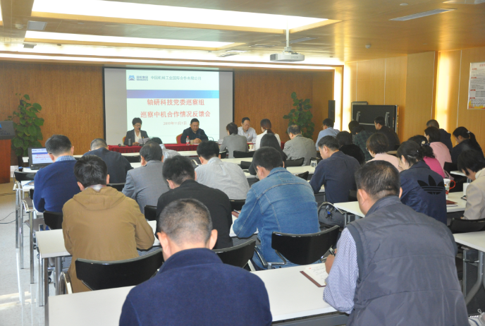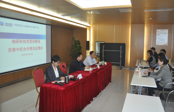 2019年11月1日上午,軸研科技黨委巡察組對(duì)中機(jī)合作巡察反饋會(huì)在中機(jī)合作9樓多功能廳召開(kāi)。軸研科技紀(jì)檢監(jiān)察室主任魯光耀代表巡察組向中機(jī)合作反饋巡察意見(jiàn)和建議。中機(jī)合作黨委書(shū)記、執(zhí)行董事和總經(jīng)理郭春陽(yáng)做表態(tài)發(fā)言。會(huì)議由中機(jī)合作黨委副書(shū)記馮麗暉主持。軸研科技巡察組成員、中機(jī)合作中層及以上領(lǐng)導(dǎo)干部、全體黨員及職工代表參加了反饋會(huì)。