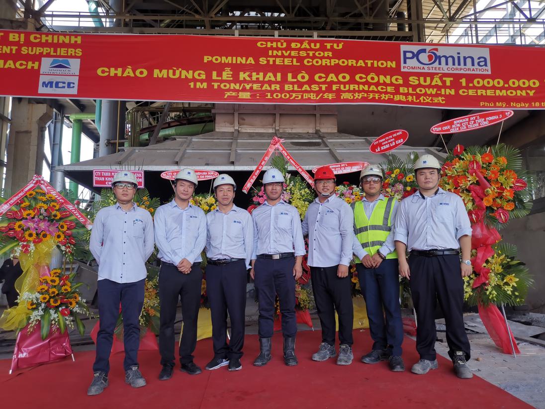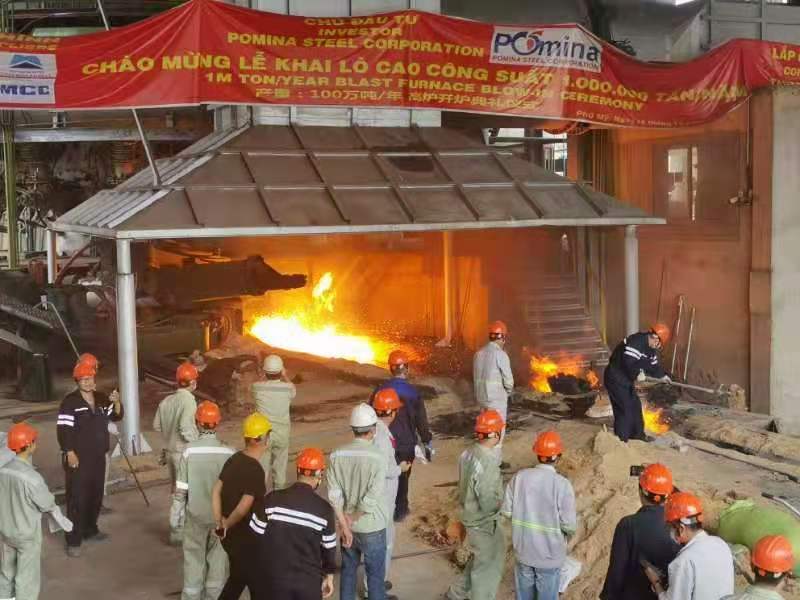 POMINA公司是越南當(dāng)?shù)嘏判星叭纳鲜袖撹F企業(yè),位于越南巴地頭頓省,此次熱試的高爐是越南南部第一座630M3 高爐。