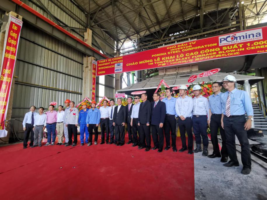 越南當(dāng)?shù)貢r(shí)間11月18號(hào)上午,POMINA鋼鐵集團(tuán)公司在POMINA 3廠高爐區(qū)域隆重舉行了高爐開爐儀式。現(xiàn)場鮮花錦簇,條幅高掛,氣氛熱烈。中機(jī)合作執(zhí)行董事、總經(jīng)理郭春陽發(fā)信祝賀,中機(jī)合作代表張玉恒、陳啟源等出席了開爐儀式。POMINA總經(jīng)理Mr. Do Tien Si致辭中對中機(jī)合作及施工各方克服新冠疫情等困難,緊密合作,積極推進(jìn)項(xiàng)目進(jìn)展表示由衷的感謝。