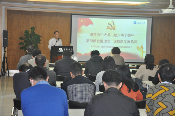 黨委書(shū)記講專(zhuān)題黨課。為將學(xué)習(xí)十九屆五中全會(huì)精神進(jìn)一步推向深入,11月19日,中機(jī)合作黨委書(shū)記、執(zhí)行董事兼總經(jīng)理郭春陽(yáng)就學(xué)習(xí)貫徹十九屆五中全會(huì)精神和《習(xí)近平談治國(guó)理政》(第三卷),以《胸懷兩個(gè)大局,融入兩個(gè)循環(huán),貫徹新發(fā)展理念,謀劃新發(fā)展格局》為題講專(zhuān)題黨課,要求廣大黨員干部認(rèn)真貫徹十九屆五中全會(huì)精神,把握國(guó)內(nèi)國(guó)際大勢(shì),胸懷中華民族偉大復(fù)興之戰(zhàn)略全局和世界百年未有之大變局“兩個(gè)大局”,抓住我國(guó)重要戰(zhàn)略機(jī)遇期,積極融入以國(guó)內(nèi)大循環(huán)為主體、國(guó)內(nèi)國(guó)際相互促進(jìn)的雙循環(huán),貫徹新發(fā)展理念,構(gòu)建新發(fā)展格局。
