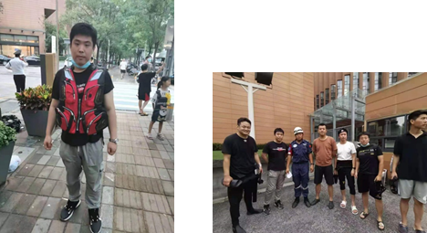 7月22日的早晨,福建藍(lán)天救援隊第三小組抵達(dá)建業(yè)總部港時已接到3個救援任務(wù),然而人生地不熟的他們急需鄭州本地人員幫忙帶路。救援小組組長拿著喇叭喊:“有沒有熟悉鄭州白沙道路,并且會游泳的人?”焦陽剛好路過,立刻走上去說:“我符合,讓我參加吧!”他就這樣穿上了救生衣,馬不停蹄地奔往鄭州受災(zāi)最嚴(yán)重的醫(yī)院——阜外華中心血管病醫(yī)院。