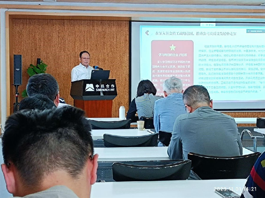 11月1日下午,中機(jī)合作黨委書記、董事長(zhǎng)、總經(jīng)理郭春陽(yáng)以《學(xué)思想、強(qiáng)黨性、重實(shí)踐、建新功,深入推進(jìn)國(guó)機(jī)精工國(guó)際化平臺(tái)建設(shè)》為題講授學(xué)習(xí)貫徹習(xí)近平新時(shí)代中國(guó)特色社會(huì)主義思想主題教育專題黨課。